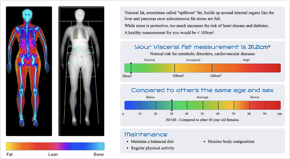 Health Risk Insights — Better understand cardiovascular, metabolic, and longevity markers linked to body composition.